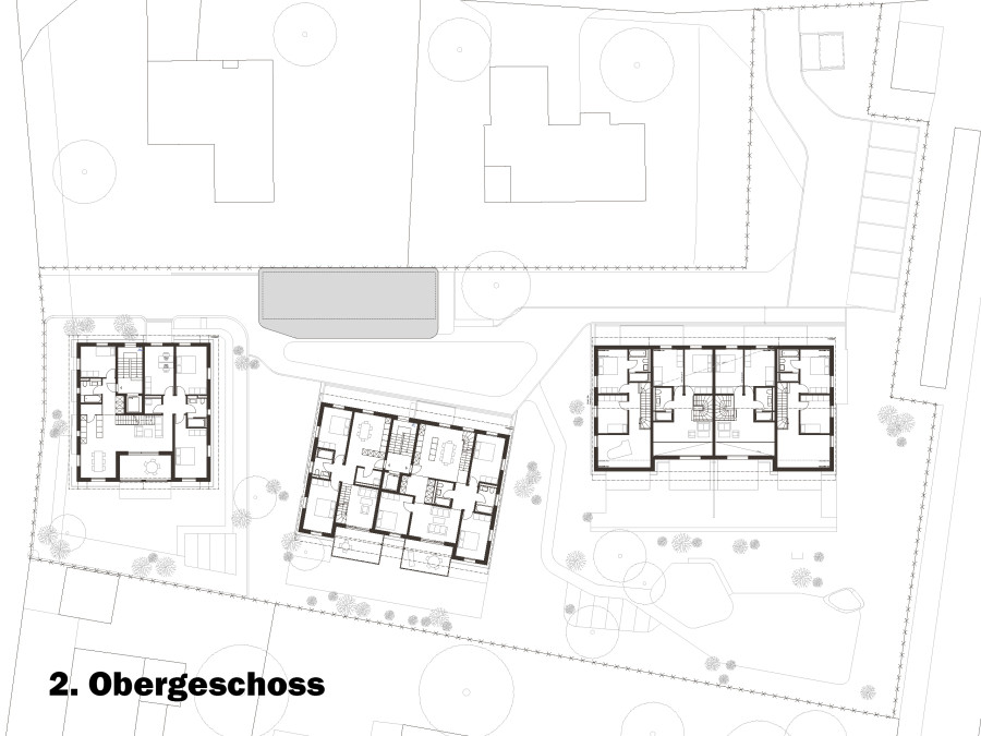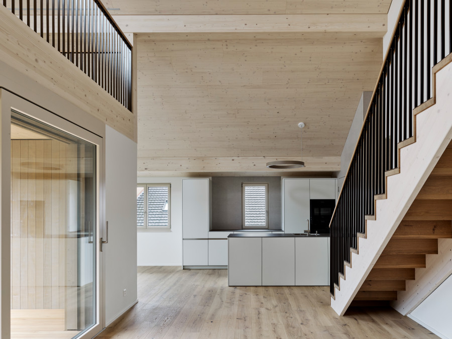 Die Wohnungen sind funktional geschnitten: helle Wohn- und Schlafräume, Küche, zwei Nasszellen sowie ein Balkon oder eine Terrasse mit Blick ins Grün. Damit wird ein klares, alltagstaugliches Angebot für unterschiedliche Haushaltsgrössen geschaffen. Die Reiheneinfamilienhäuser ergänzen dies um mehr Privatheit und direkten Aussenraum.