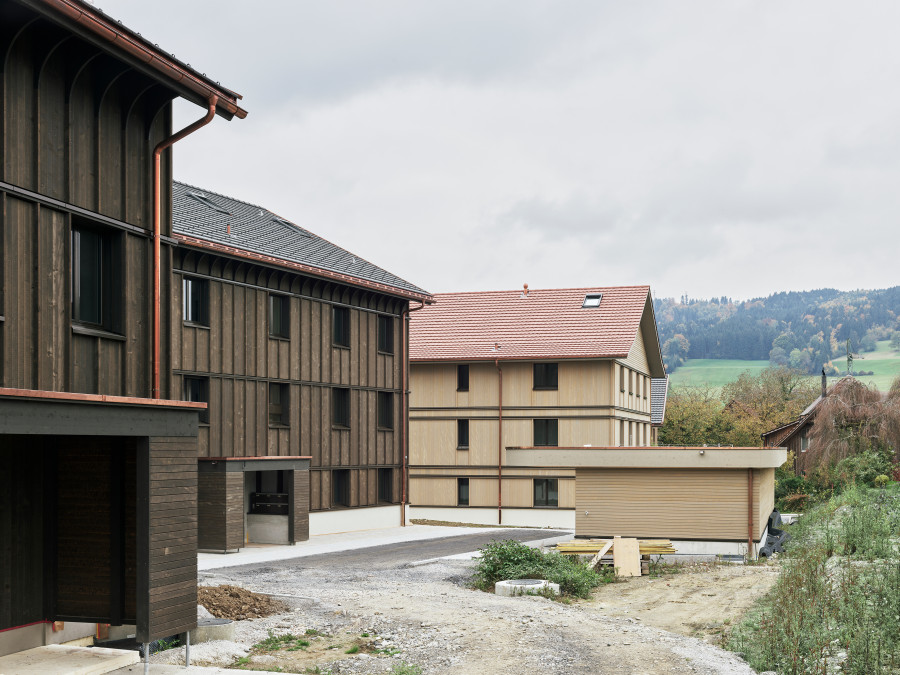 Am Rand des historischen Dorfkerns von Ermensee entsteht ein Ensemble, das ortstypische Strukturen aufnimmt und zeitgenössisch interpretiert. Die Überbauung mit Geschosswohnungen und Reiheneinfamilienhäusern fügt sich ruhig in das gewachsene Umfeld ein und öffnet sich zur umgebenden Landschaft.