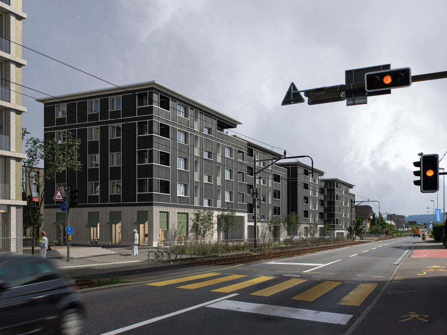 Auf dem ehemaligen Galliker-Areal entsteht entlang von Luzernerstrasse und Bahngeleise ein neues Quartier aus vier Baukörpern, das Wohnen und Arbeiten mischt. Die Volumen sind versetzt, der Aussenraum wird über einen grossen, ostseitigen Hof organisiert; die Parkierung liegt überwiegend unterirdisch. Energie liefert eine Grundwasser-Wärmepumpe in Kombination mit PV, gebaut wird primär in Holz.