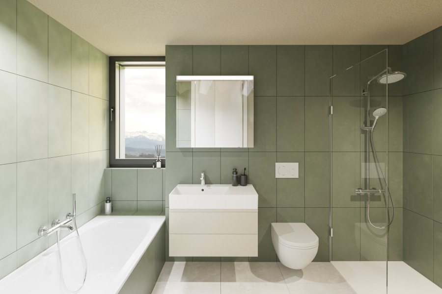 Die Setzung folgt dem bestehenden Dorfrand und bricht die Länge der Baukörper durch Versätze, Rücksprünge und differenzierte Höhenstaffelungen, sodass trotz Nähe zur Kantonsstrasse ein ruhiges Bild entsteht und unerwünschte Einblicke reduziert werden. In einer ersten Etappe werden zwei der insgesamt vier Volumen realisiert. Erdgeschossig ergänzen Gewerbenutzungen das Wohnen – so entstehen kurze Wege und eine klare Adressbildung entlang der Luzernerstrasse.