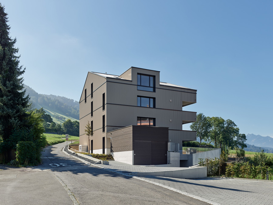 Ein kompaktes Mehrfamilienhaus mit vier grosszügigen Mietwohnungen schliesst den Siedlungsrand von Root zur Landschaft ab. Lukarnen prägen die Dachsilhouette, Balkone und Sitzplätze öffnen die Wohnungen zum Grünraum; die Lage bietet Weitblicke bis zum Pilatus. Grundrisse und Erschliessung sind einfach organisiert und auf den Alltag ausgelegt.